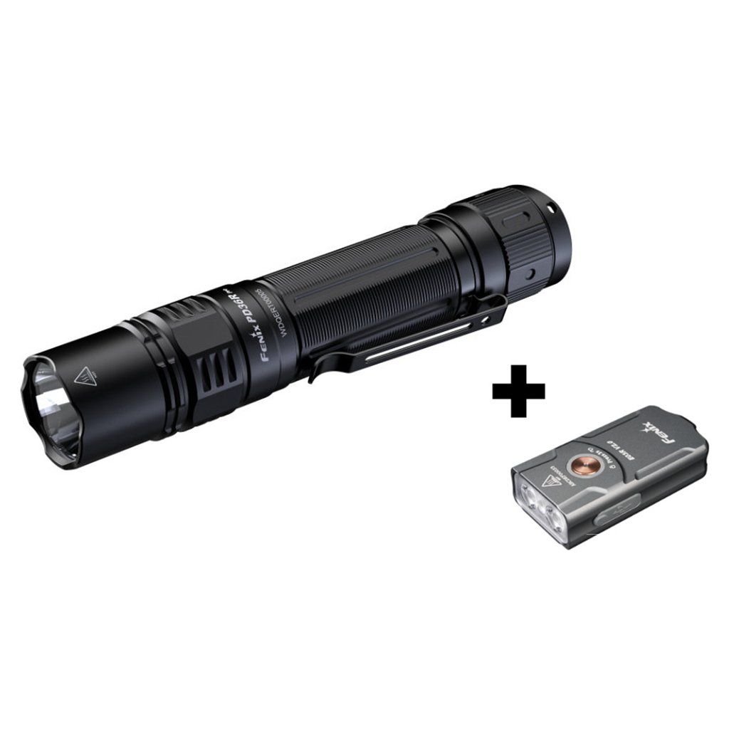 Součástí setu je také kompaktní svítilna Fenix E03R V2.0 určená pro nošení na klíčích nebo jako záložní světlo. Kombinace těchto dvou svítilen poskytuje univerzální řešení pro taktické použití, outdoorové aktivity i každodenní nošení.