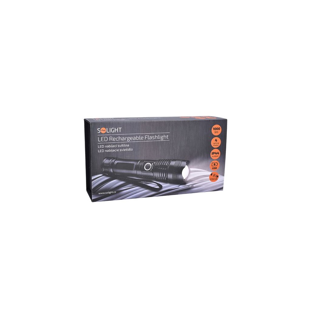 Solight LED nabíjecí svítilna, 1000lm, zoom, dárkové balení, Li-Ion
