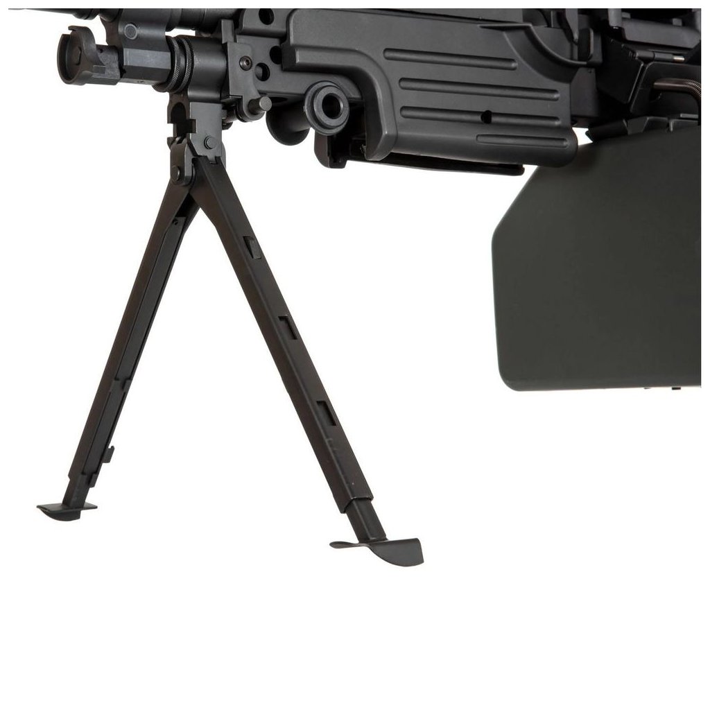 Produkt: Specna Arms SA-249 Para CORE černá (Specna Arms) [SA-249] **Základní Specifikace:** - **Typ zbraně:** Kulomet M249, SA-249 PARA CORE™ - **Výrobce:** Specna Arms - **Pohon:** AEG (Automatic Electric Gun) - **Režim střelby:** Safe/Auto - **Ráže:** 6 mm - **BlowBack:** Ne - **Úsťová rychlost:** až 120 m/s (až 400 fps) - **Teoretický dostřel:** až 55 m - **Doporučená váha kuliček:** 0,23g - 0,28g **Vnější Konstrukce:** - **Délka zbraně:** 790/920 mm - **Váha:** 4970 g - **Materiál těla:** Kov - **Materiál hlavně:** Kov - **Materiál pažby:** Kov - **Materiál rukojeti:** Nylon - **Pojistka:** Klasická - **Realistický vzhled:** Ano - **Barva:** Černá **Vnitřní Mechanismus:** - **HopUp:** Ano, regulovatelný - **Délka hlavně:** 330 mm - **Mechabox:** Typ M249, zesílený - **Ozubená kola:** Ocelová - **Ložiska:** 8 mm, kuličková - **Konektor:** Malá Tamiya **Zásobník:** - **Kapacita:** 2500 BB - **Typ:** Hi-cap, dotáčení BB pomocí mechanismu napojeného na 2x AA baterie - **Materiál zásobníku:** Plast **Obsah Balení:** - Zbraň - Zásobník - Manuál Tento technický popis poskytuje detailní informace o vlastnostech a specifikacích produktu Specna Arms SA-249 Para CORE.