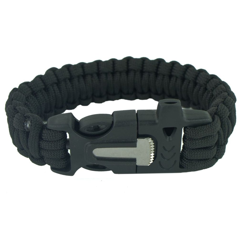Survival náramek 4v1 Black Píšťalka/křesadlo/nožík/paracord – A.C.M.
