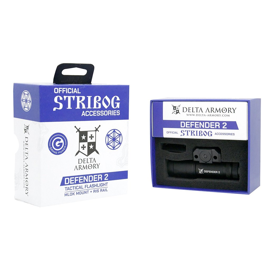 Taktická svítilna Defender 2 Stribog Delta Armory černá je oficiální příslušenství pro zbraňový systém STRIBOG a je vyrobena z odolné hliníkové slitiny pro maximální odolnost a spolehlivost. S jasem 700 lumenů poskytuje silné a stabilní světlo, které je perfektní pro noční operace, outdoor dobrodružství nebo taktické situace. Svítilnu lze snadno připevnit na 22mm RIS lištu nebo na systém M-LOK díky přídavné liště, která je součástí balení.