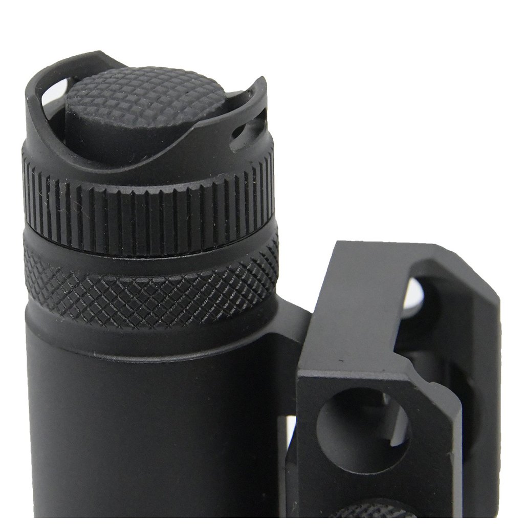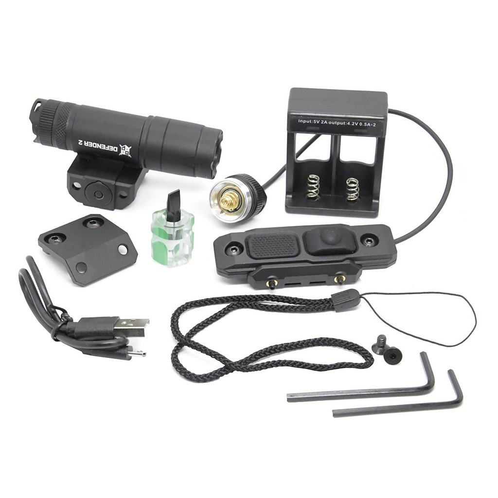 Součástí balení je také dálkový tlakový spínač, který umožňuje pohodlné ovládání přímo z předpažbí. Navíc získáte nabíječku pro dvě baterie typu 16340, dvě baterie Li-ion 16340 ICR17/35, napájecí kabel, poutko na ruku a imbusový klíč. Kompaktní rozměry a nízká hmotnost 105 g zajišťují snadnou manipulaci a přenášení svítilny.