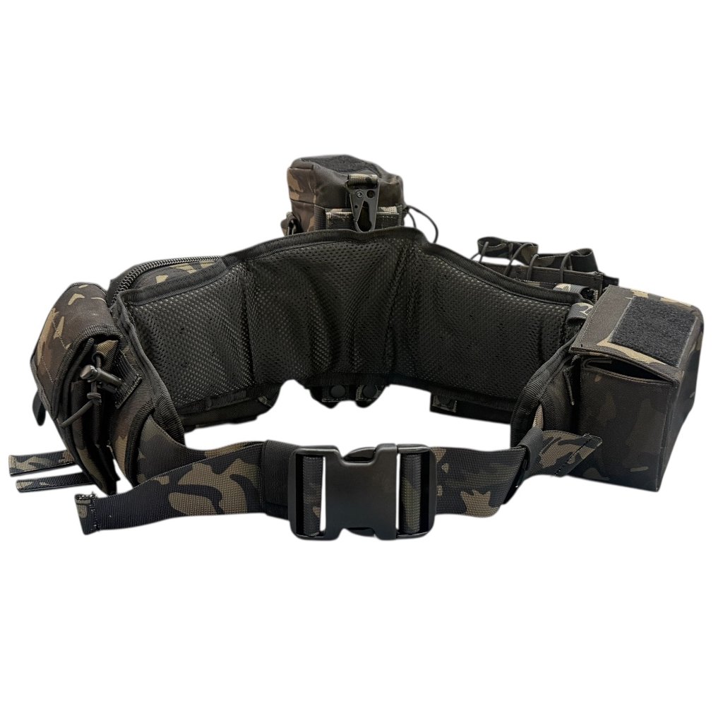 Kompletně vybavený taktický bederní opasek v provedení Multicam Black. Obsahuje sumky pro zásobníky, odhazovák, pouzdro na láhev i utility panel. Nastavitelný a polstrovaný pro pohodlné nošení.