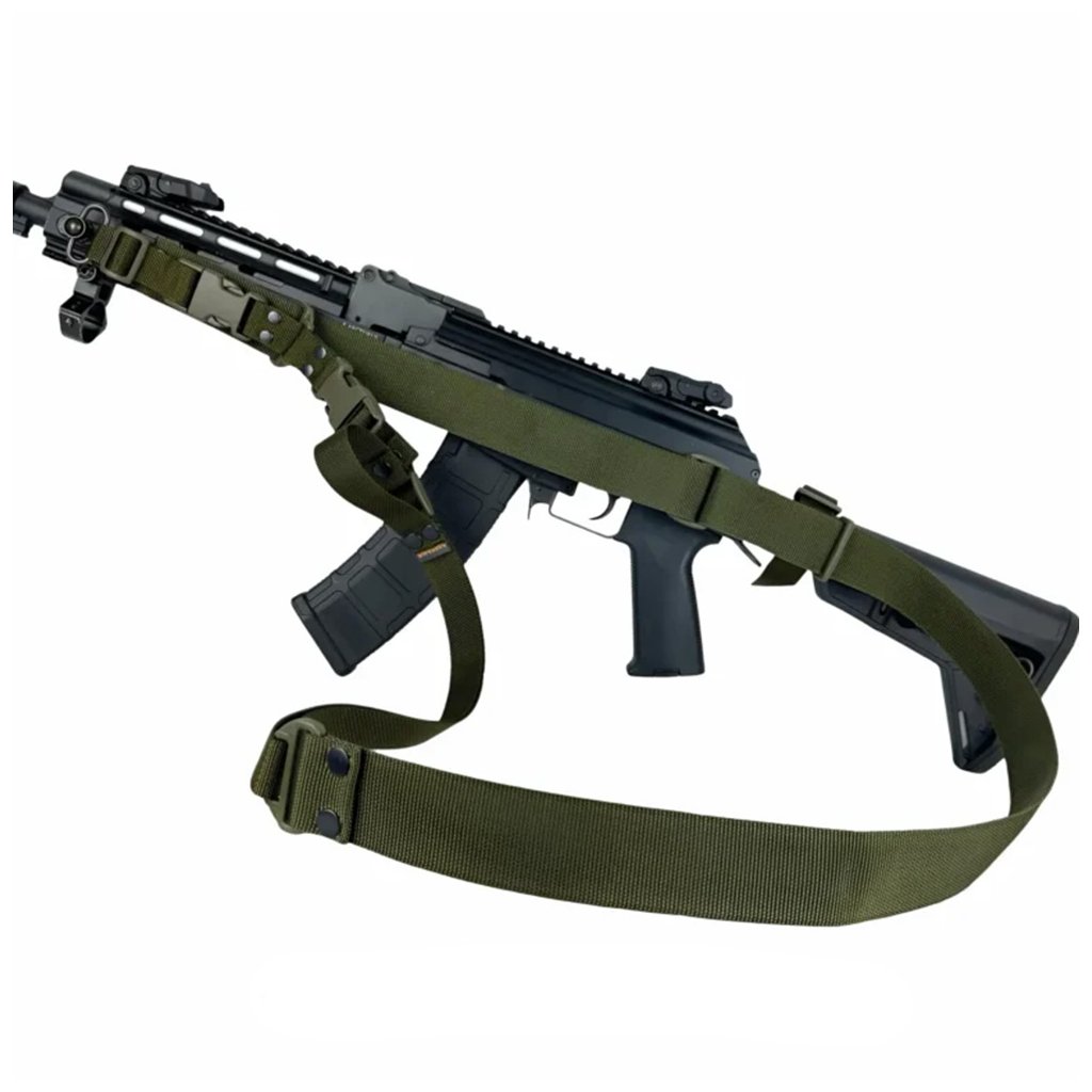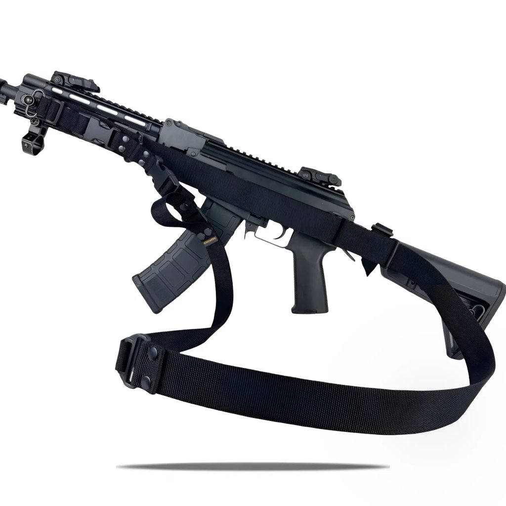 je vylepšená verze osvědčeného třístupňového popruhu navržená pro aktivní použití v terénu. Popruh používá 25mm silnou polyamidovou pásku a pevné komponenty, které umožňují rychlé a přesné nastavení délky. Díky přidané přezce lze popruh snadno používat i jako jednopunktový — bez zbytečného tlaku přes hrudník. Montáž na přední úchyt a ke kolbě zajišťují dvouštěrbinové tiché spony, které minimalizují hluk při manipulaci se zbraní. Popruh nabízí „biatlonový“ režim pro nošení zbraně na zádech a rychlou levostrannou smyčku pro okamžité doladění délky během pohybu. Konstrukce Tank Track® s kovovými nýty zvyšuje odolnost v místech vystavených tření a zajišťuje dlouhou životnost i při náročném používání. Popruh je kompatibilní s většinou dvouručních zbraní — od karabin přes útočné pušky až po brokovnice.