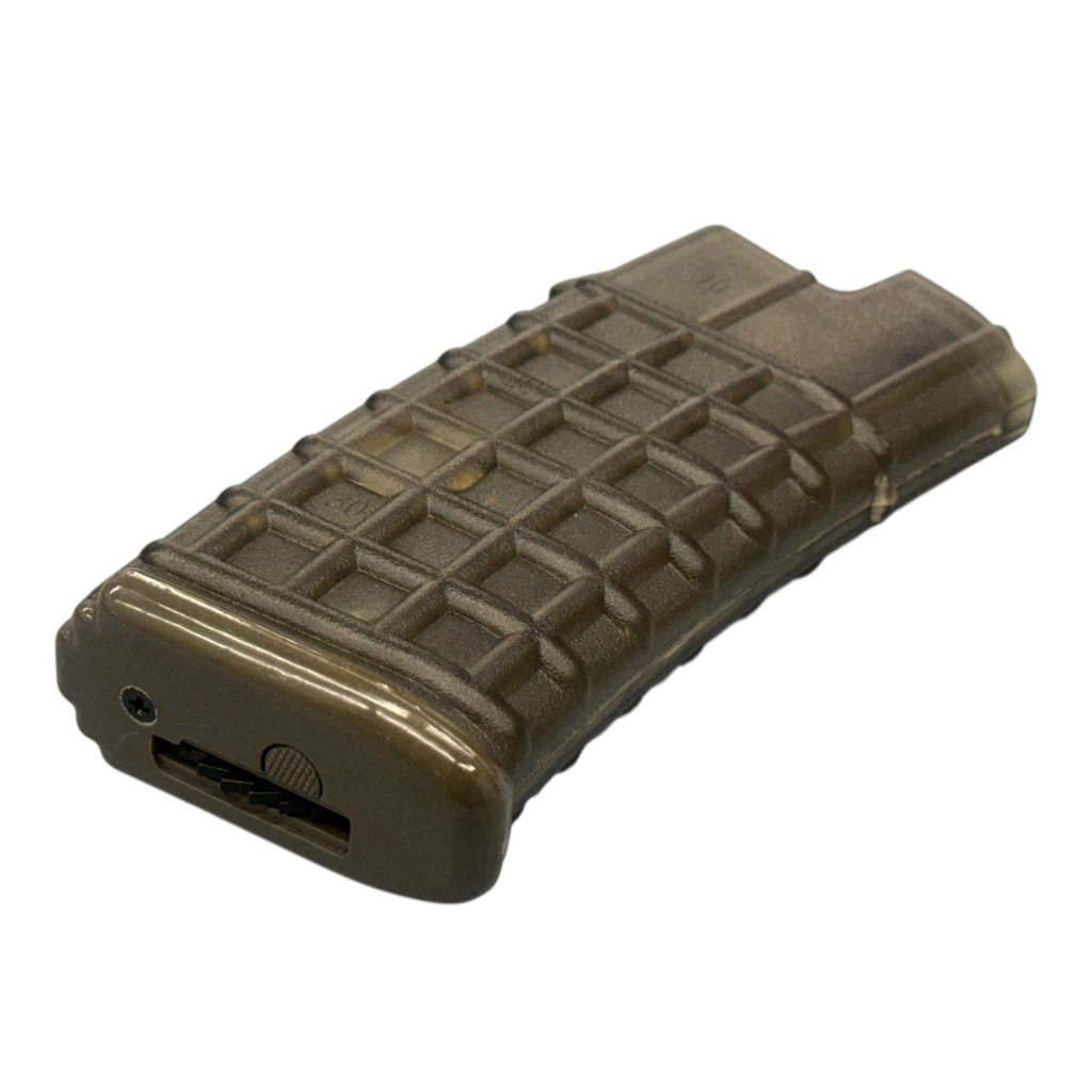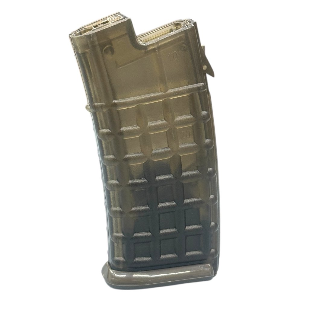 Zásobník AUG 330 transparent - Jing Gong [plast] – plastový Hi-Cap zásobník pro repliky AUG s kapacitou 330 BB, průhledné provedení pro snadnou kontrolu zásoby.